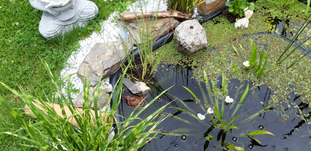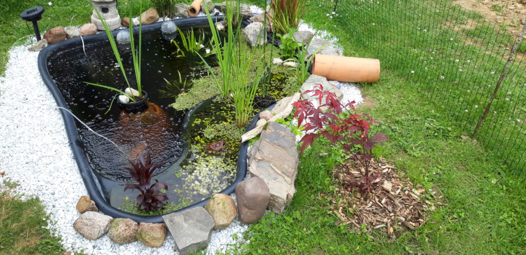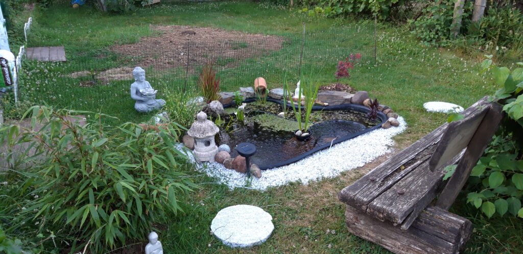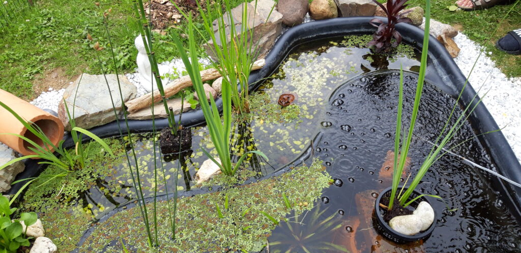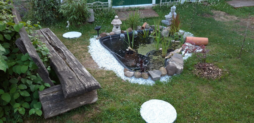 Ein kleines schnelle Projekt für unseren Garten. Es entstand ein Biotop für unsere zugewanderten Grasfrösche. Mit einer kleine Filterpumpe wurde das Wasser im Teich umgewälzt.